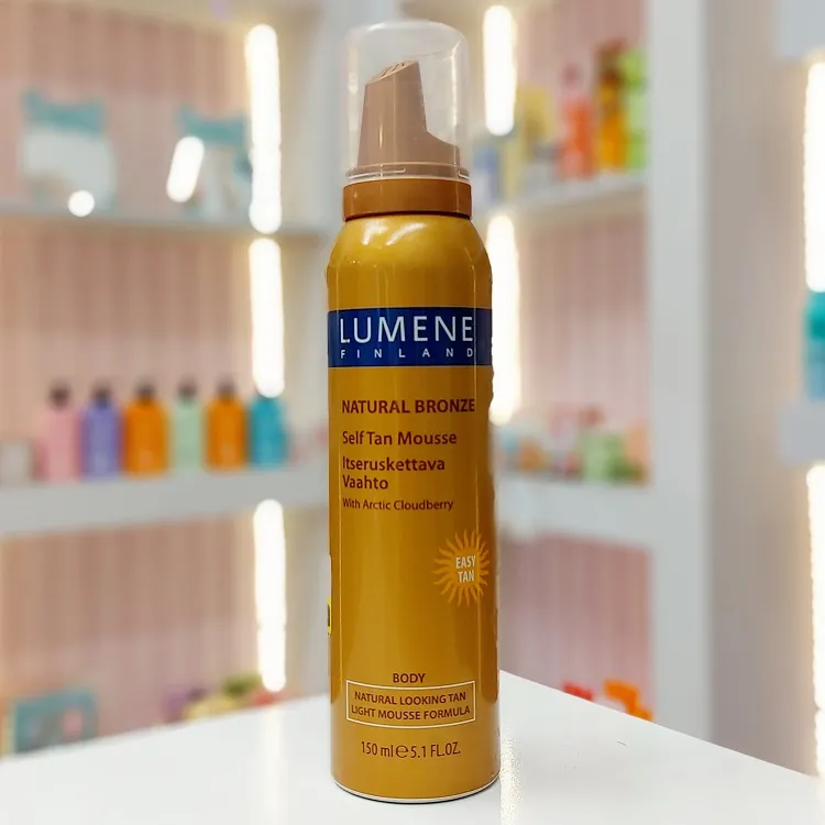 موس برنزه‌ کننده Natural Bronze از برند فنلاندی Lumene، با فرمول سبک و جذب سریع، راه‌حلی ایده‌آل برای دستیابی به رنگ برنزه طبیعی در عرض ۱۲ ساعت است. این محصول با رایحه ملایم میوه‌ های جنگلی، بدون ایجاد خطوط یا لکه، به‌راحتی روی پوست پخش می‌شود و جلوه‌ ای یکنواخت و طبیعی ایجاد می‌کند. ترکیبات مغذی مانند عصاره توت شمالی (Cloudberry)، پانتنول و گلیسرین، علاوه بر برنزه‌سازی، به آبرسانی و لطافت پوست کمک می‌کنند. مناسب برای استفاده خانگی، بدون نیاز به نور خورشید یا تخت سولاریوم.